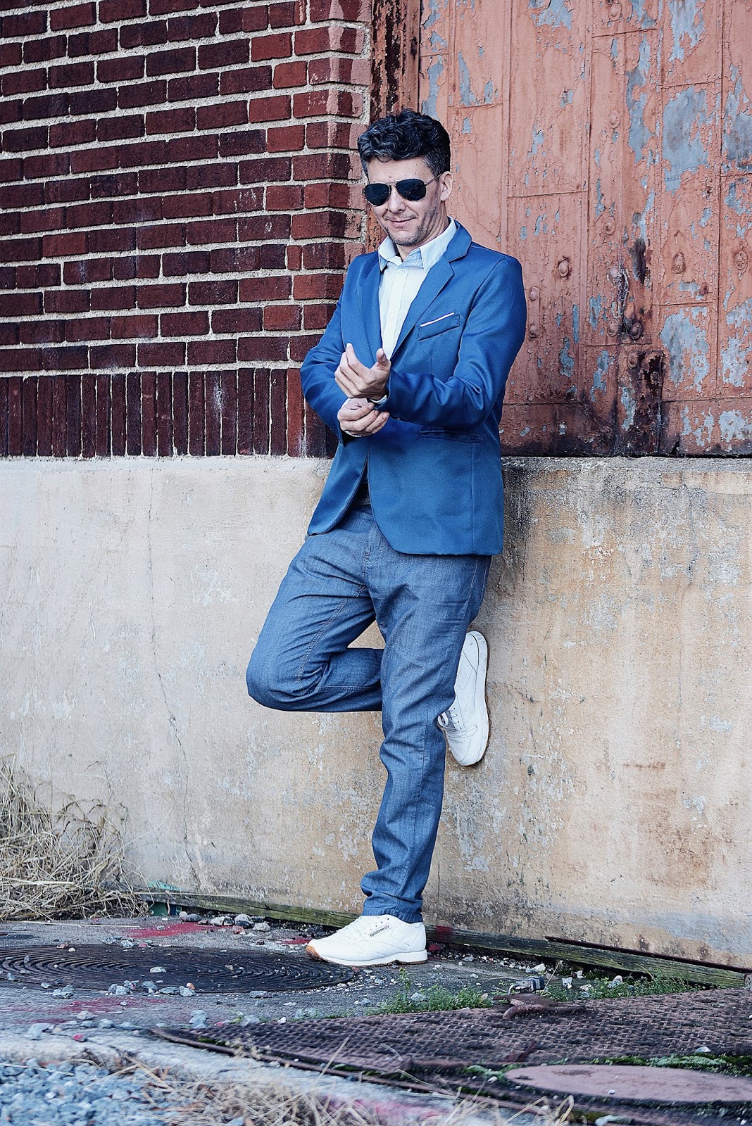Un blazer de LightInTheBox, que le da una dosis clasica al look. El toque deportivo y cool se lo dan sin lugar a dudas las zapatillas. (De paso aprovechen los descuentos especiales esta semana.)